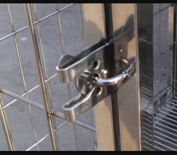 3. Kiertävä turvaoven lukko varmistaa turvallisen pääsyn ja poistumisen: Pyörivä turvaoven lukko on tärkeä osa raskaan putken metallikoiran häkkiä, jossa on avoin yläsuunnitelma, ja sillä on korvaamaton rooli lemmikkien turvallisuuden varmistamisessa. Pyörivä turvaoven lukko on helppo käyttää, ja se voi myös estää lemmikkieläimiä avaamasta häkin ovea itse vahingossa tapahtuvan paeta välttämiseksi. Tämän mallin avulla lemmikkieläinten omistajat voivat helposti avata ja sulkea häkin oven ja varmistaa myös, että oven lukko pysyy vakaana suljettuna.