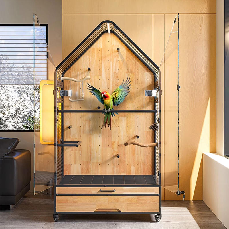 Tämä läpimurto puinen lintuhäkki, jonka luuranko on hiiliteräsrunko, tuonut kumipuu kehykseksi ja panoraaman karkaistu lasiovi, ei vain osoita luonnon kauneutta, vaan myös tajuaa tieteellisen lintujen jalostuksen. Turvallisuussuojelusta kätevään puhdistukseen, ilmaisista aktiviteeteista mukavaan asumiseen, jokainen yksityiskohta osoittaa syvän ymmärryksen lintujen tottumuksista, jolloin lintujen rakastajat voivat osoittaa luonnollisen luonteensa turvallisessa ja mukavassa ympäristössä, ja se tuo omistajalle syventävän katselukokemuksen.