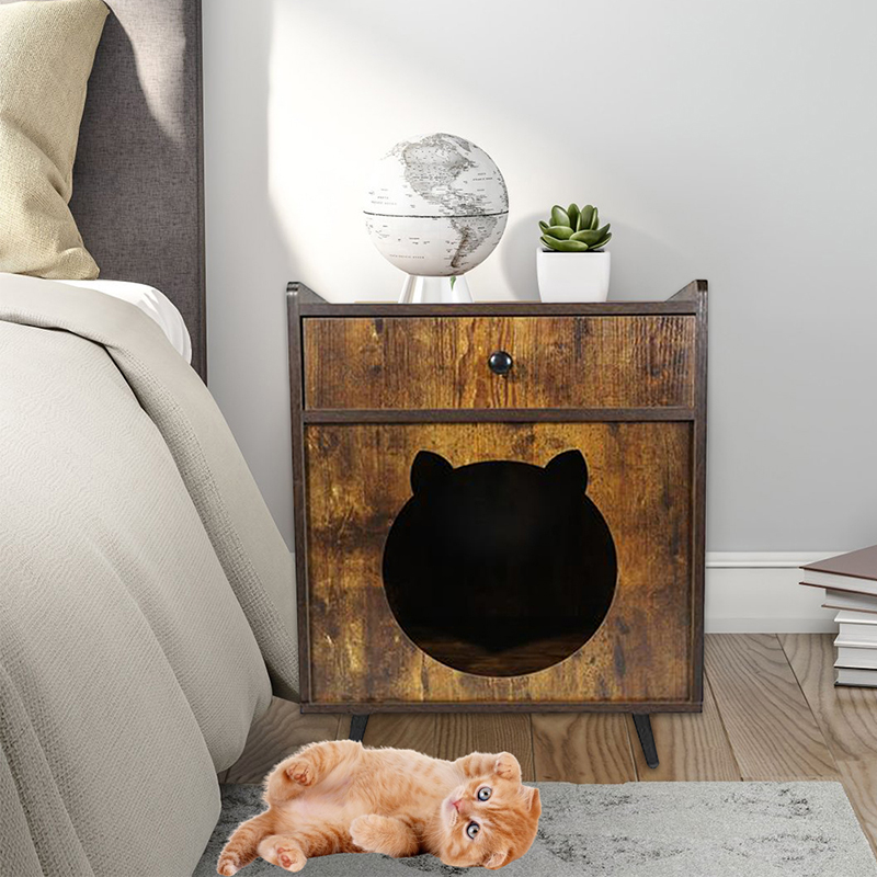 1. Suloinen ja hauska turvallinen tila: Huonekalutyyliset kissat Cage Neljä sivua, jota ympäröivät korkealaatuisen hiukkaslevyn rakenne, kissan kasvojen mallinnusovi, ei vain kissan hautaamisen luonteen vastaamiseksi, vaan myös 360 ° vartiointi.